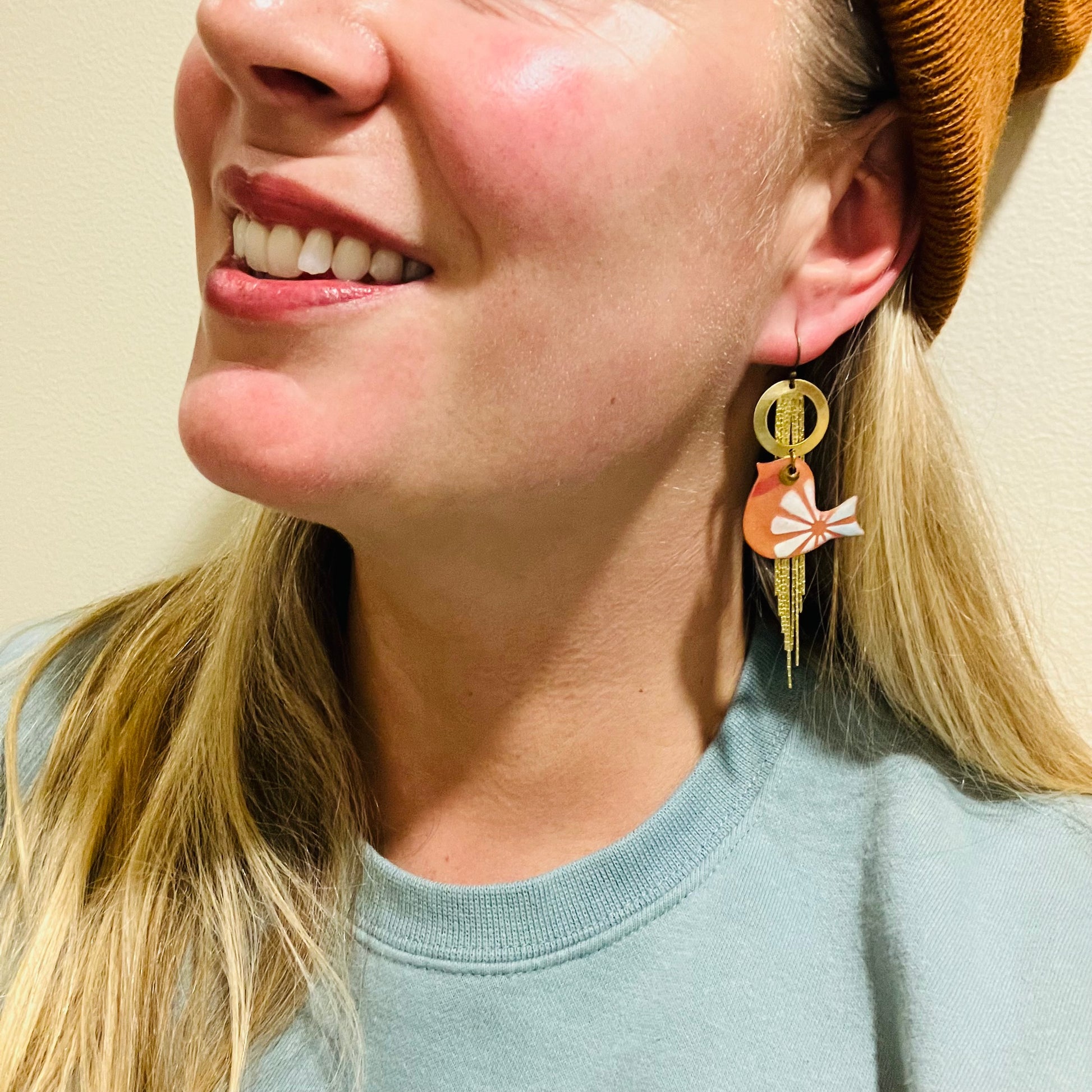 *Option: Titanium earring hooks are available to replace the copper plated hooks for an additional $2 charge. Find "Extras" collection to add the titanium hooks to your cart and contact jewelry designer Ashley to confirm you'd the earring hooks switched.