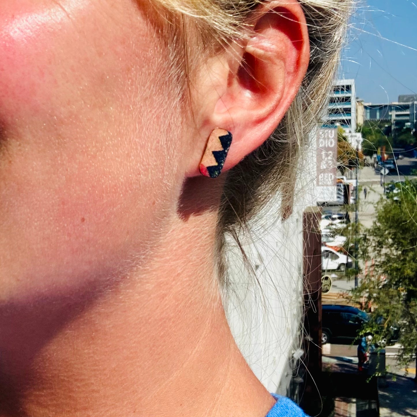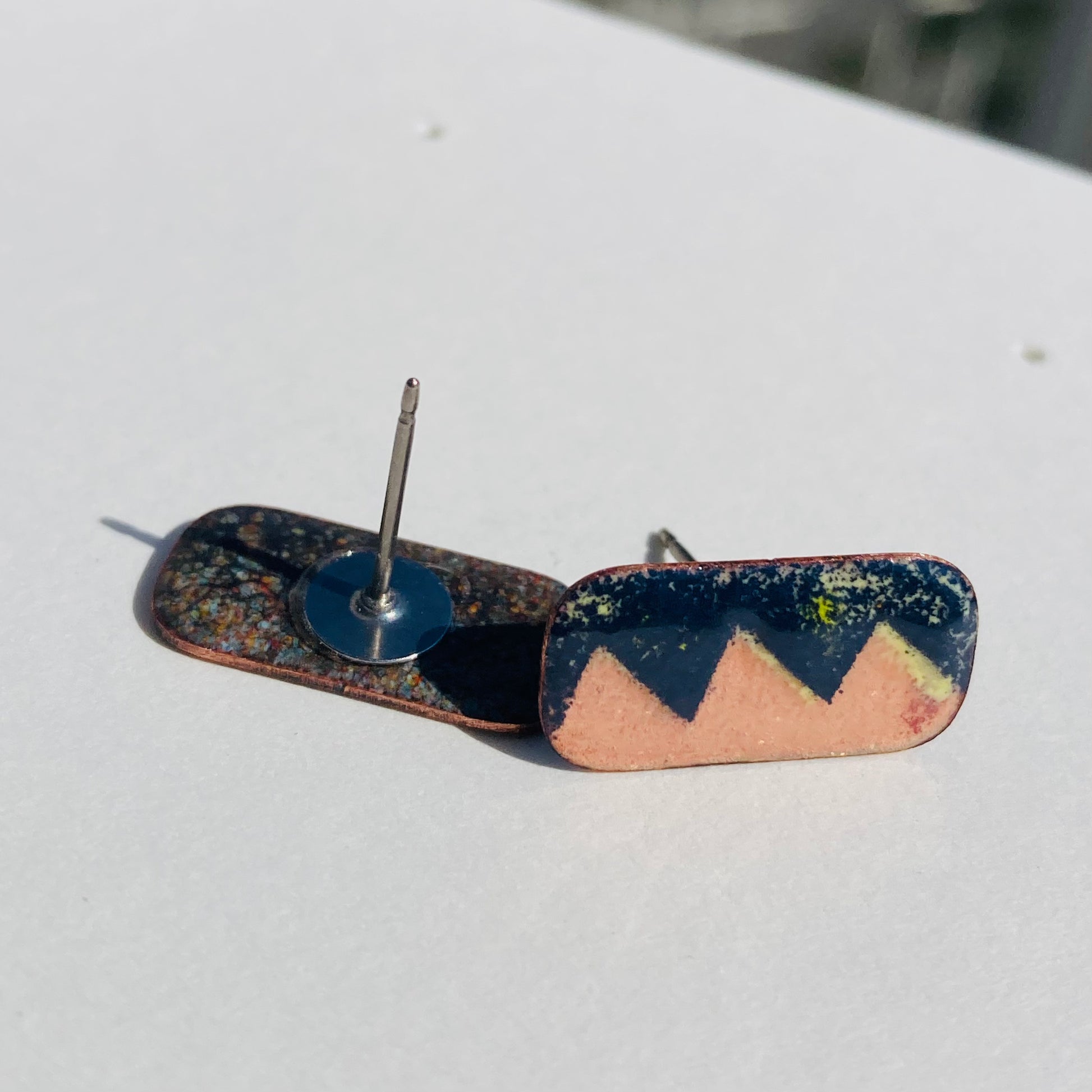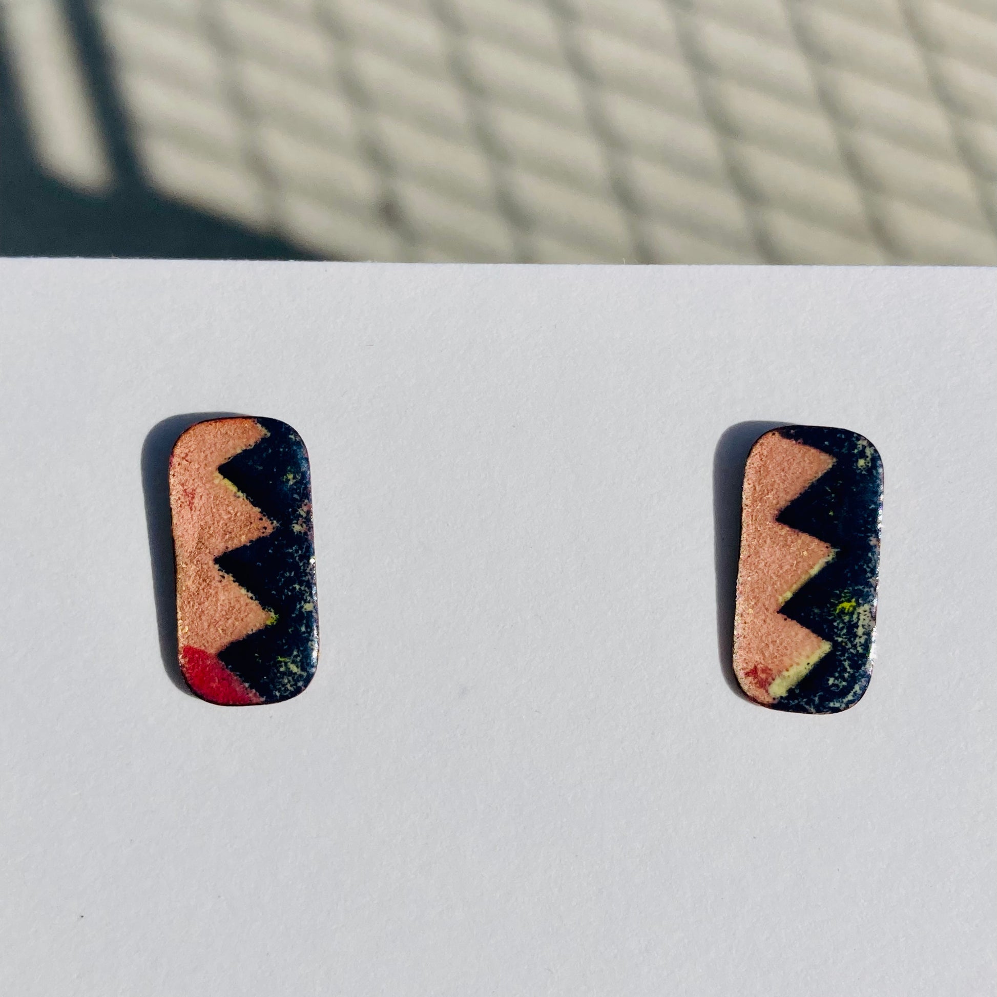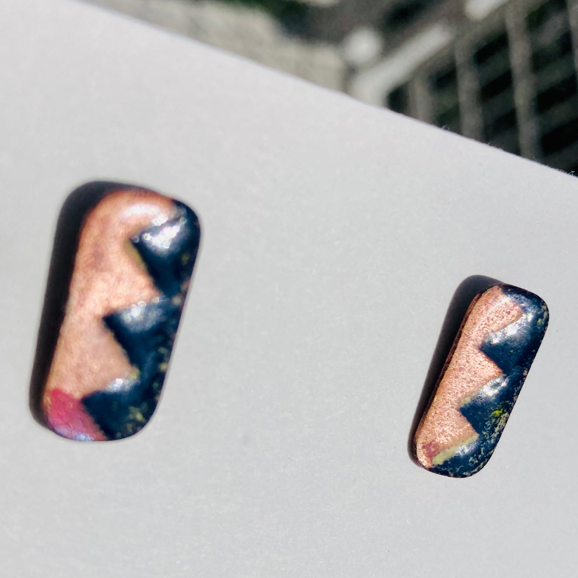 1 pair of studs Abstract original design covering a slice of copper. Funky style that makes a statement.