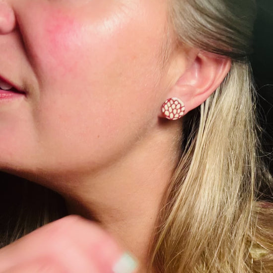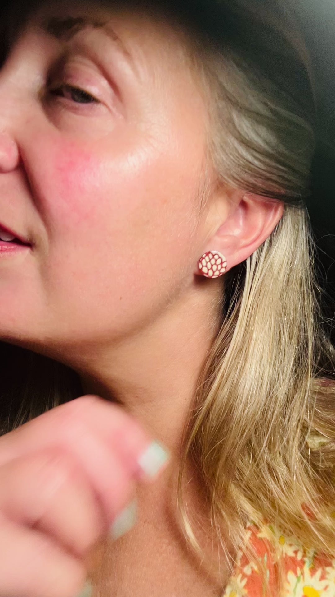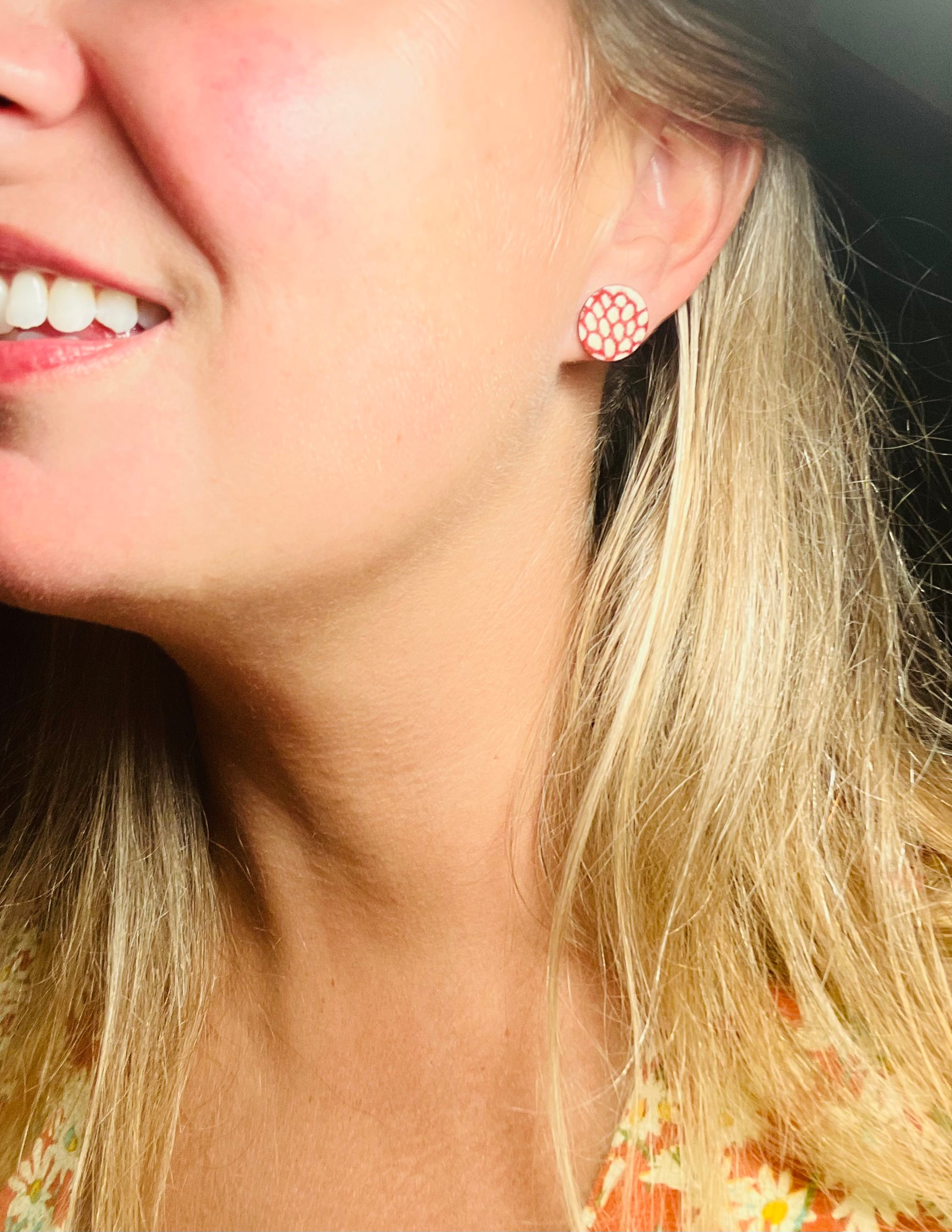 1 pair of studs Abstract original design covering a slice of copper. Funky style that makes a statement.