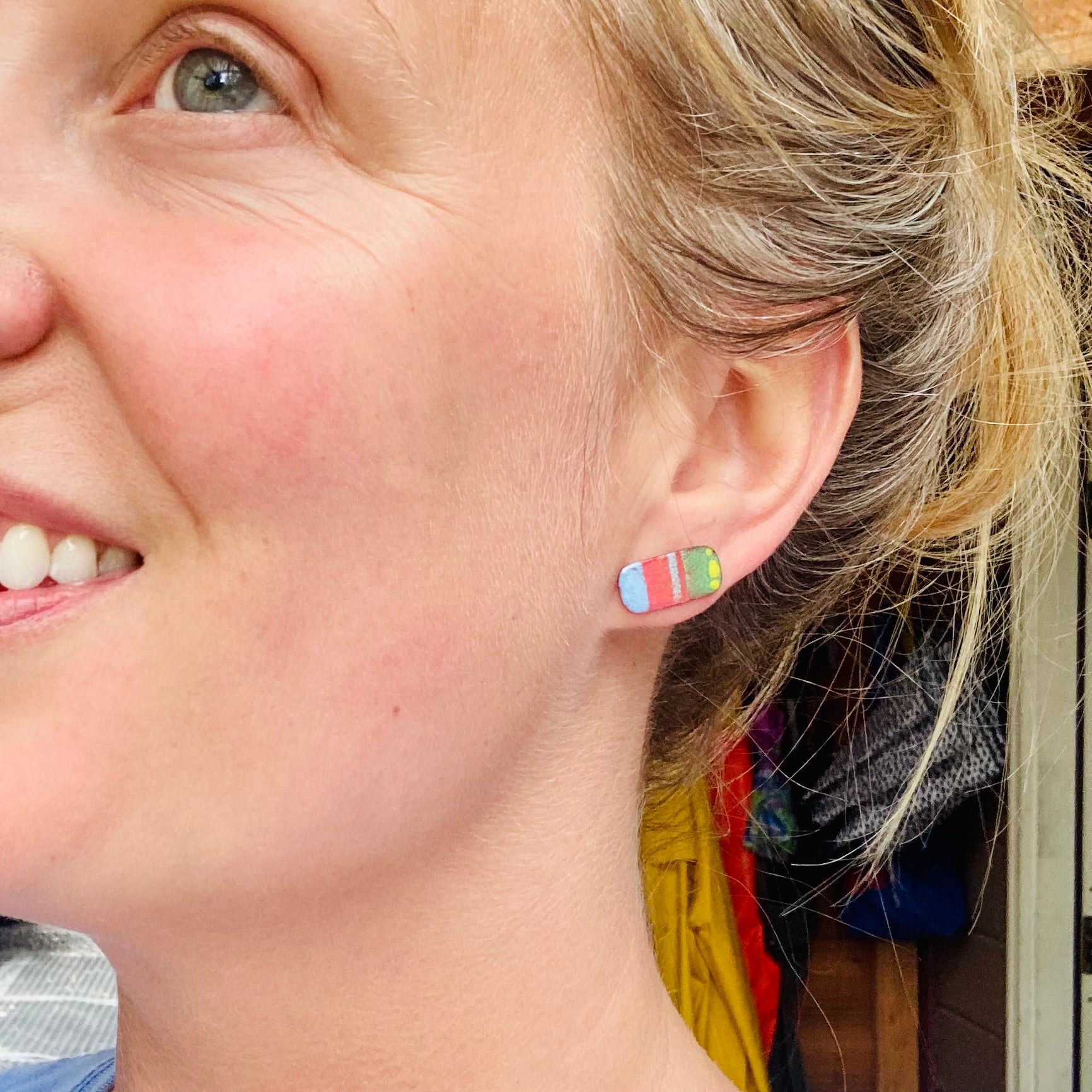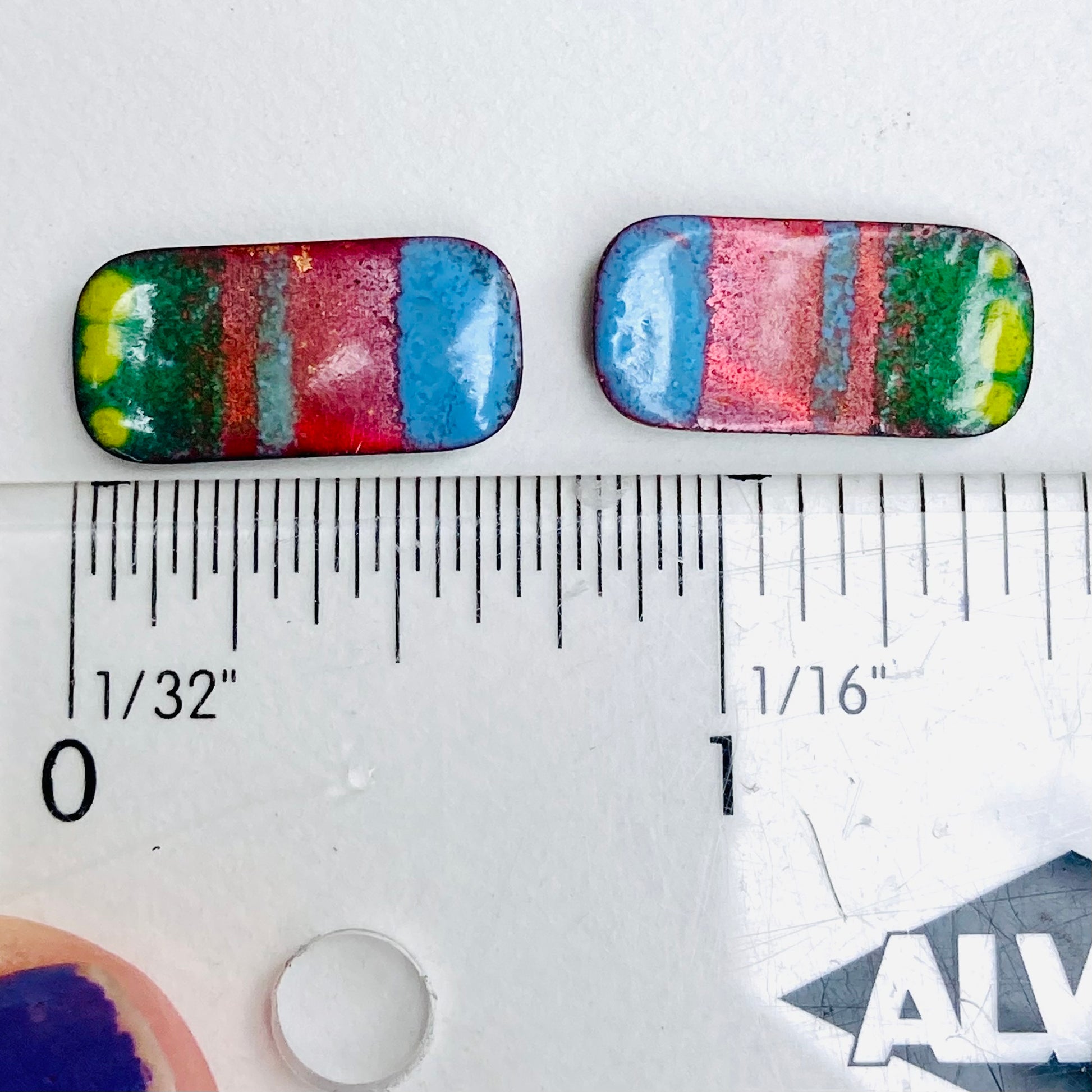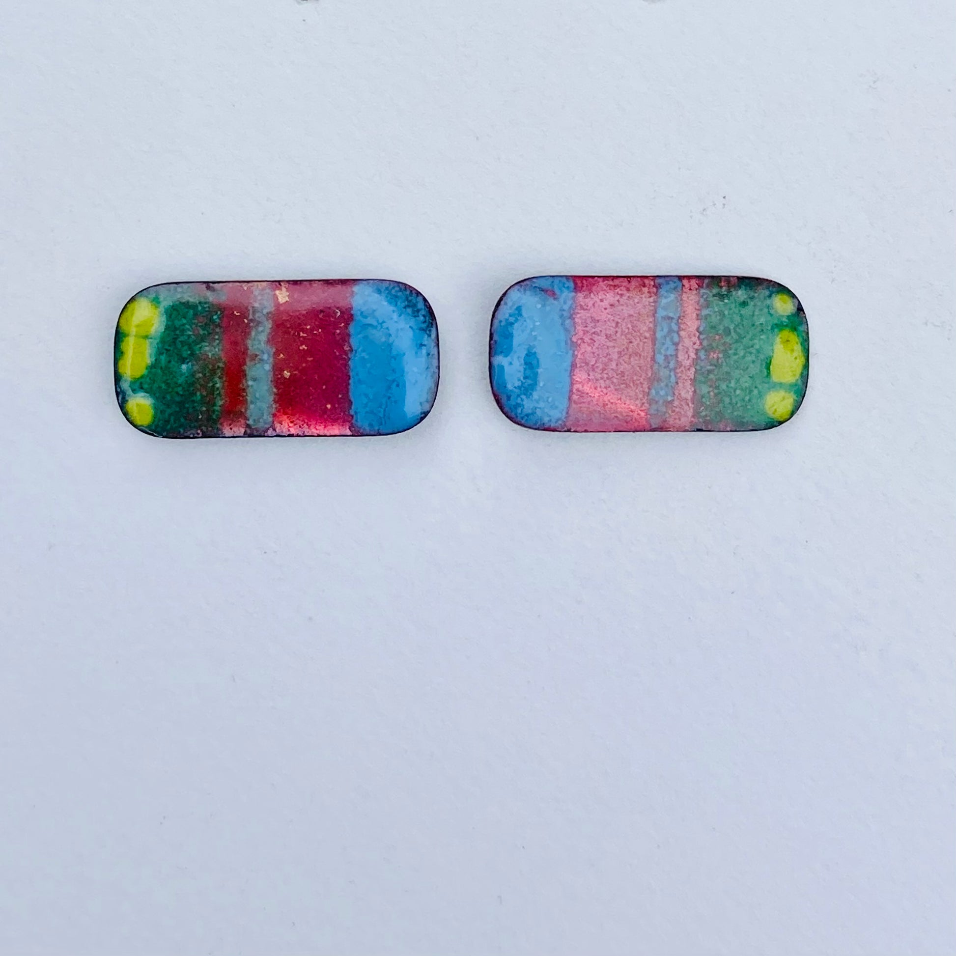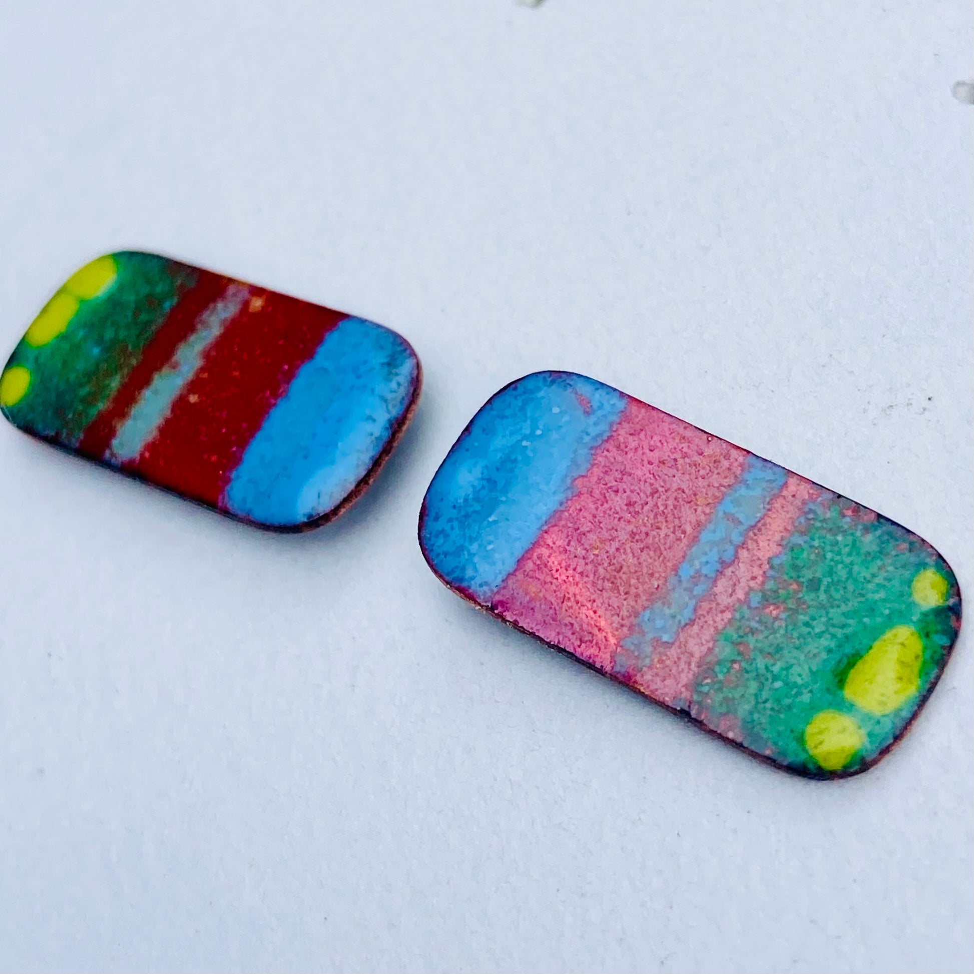 1 pair of studs Abstract original design covering a slice of copper. Funky style that makes a statement.