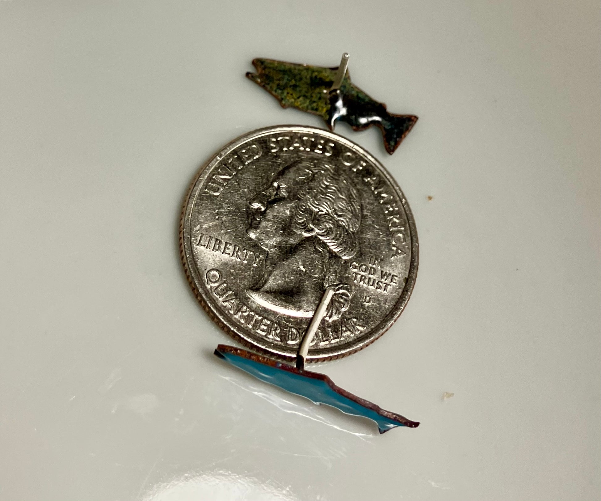 1 pair of studs Abstract original design covering a slice of copper. Funky style that makes a statement.